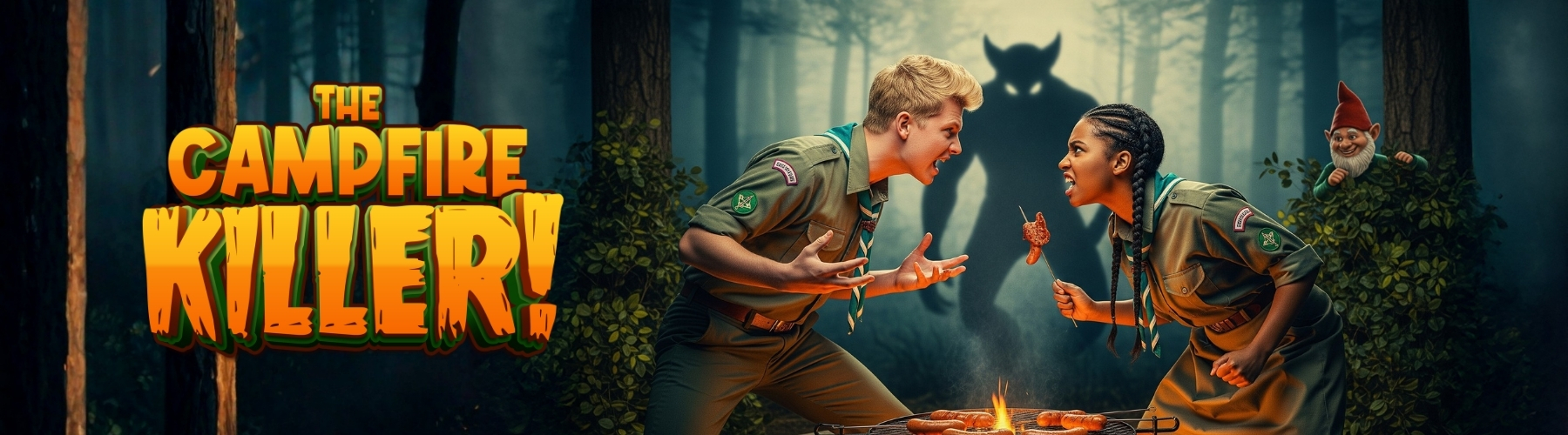 It’s 1971 and rival Scout and Guide troops have pitched up at Foggy Bottom Field, but someone’s about to earn their final badge. Tensions flare, secrets unravel, and the Beast of Badge Camp might not be the only thing prowling after dark. With stolen mascots, sabotaged sausages, and a deadly case of sibling rivalry, this murder mystery serves lashings of laughter alongside your dinner.
